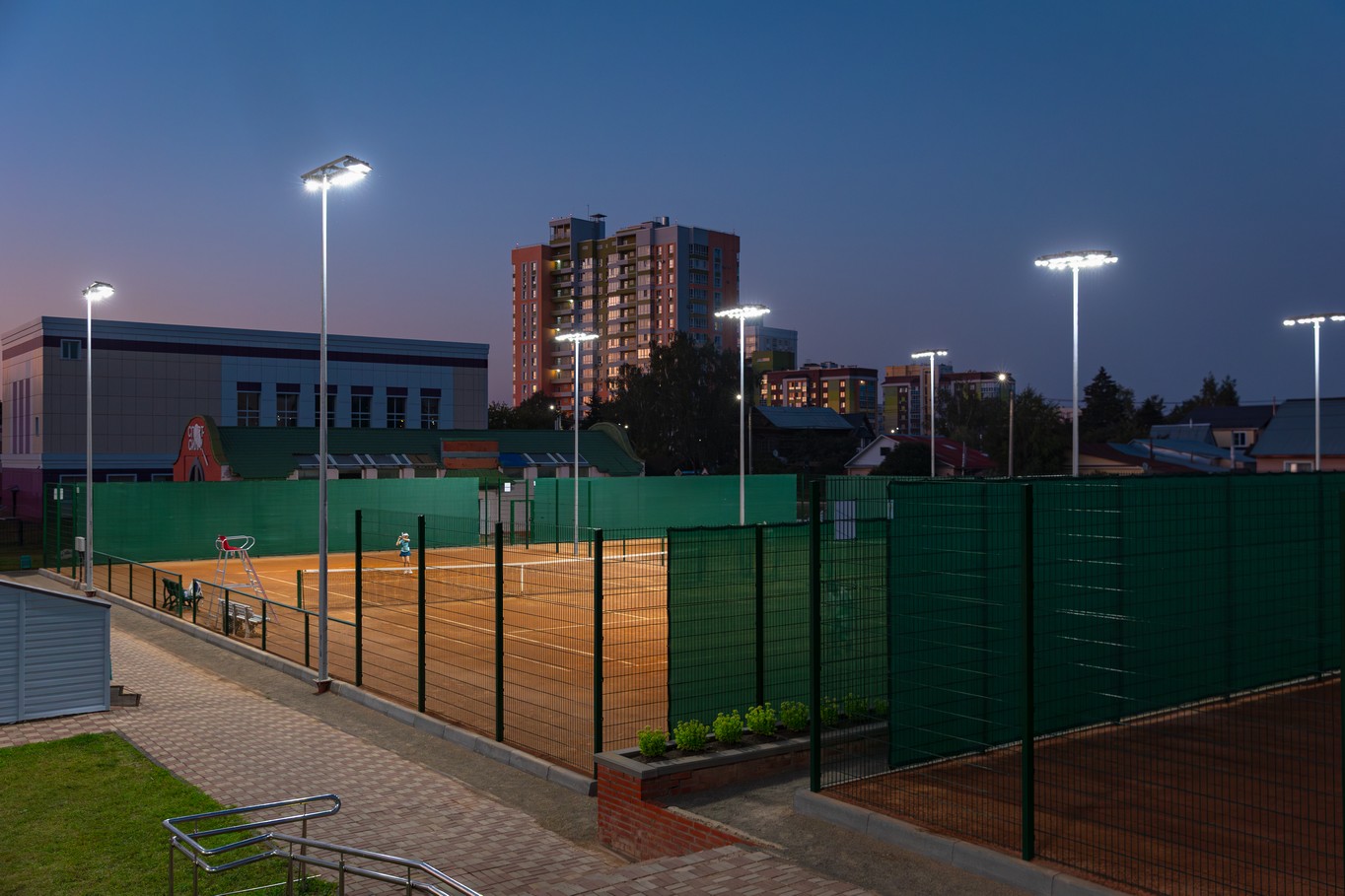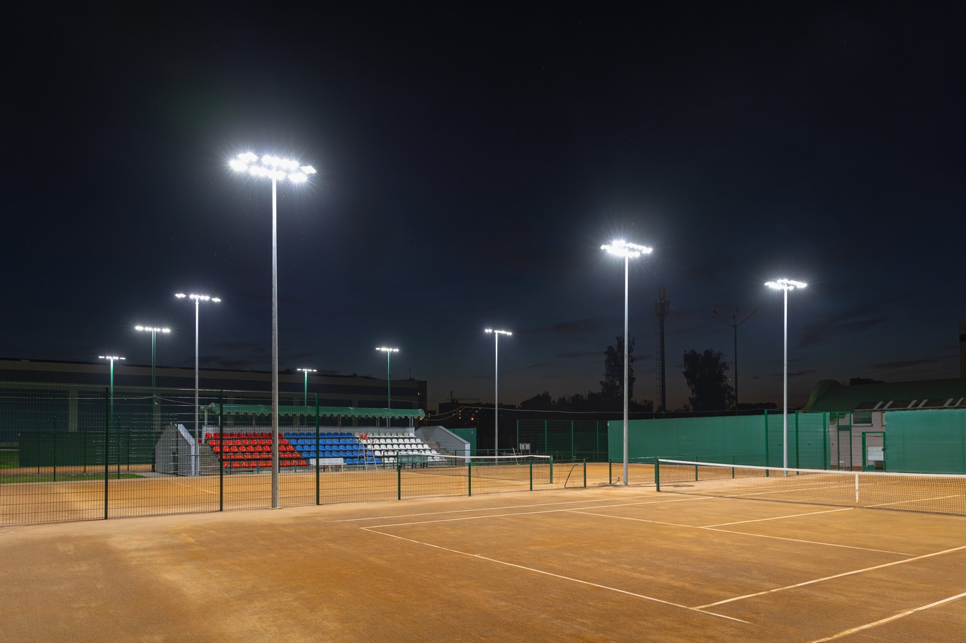 проведен детализированный светотехнический расчет для обеспечения оптимального уровня освещенности и равномерности распределения света по поверхности теннисного корта.