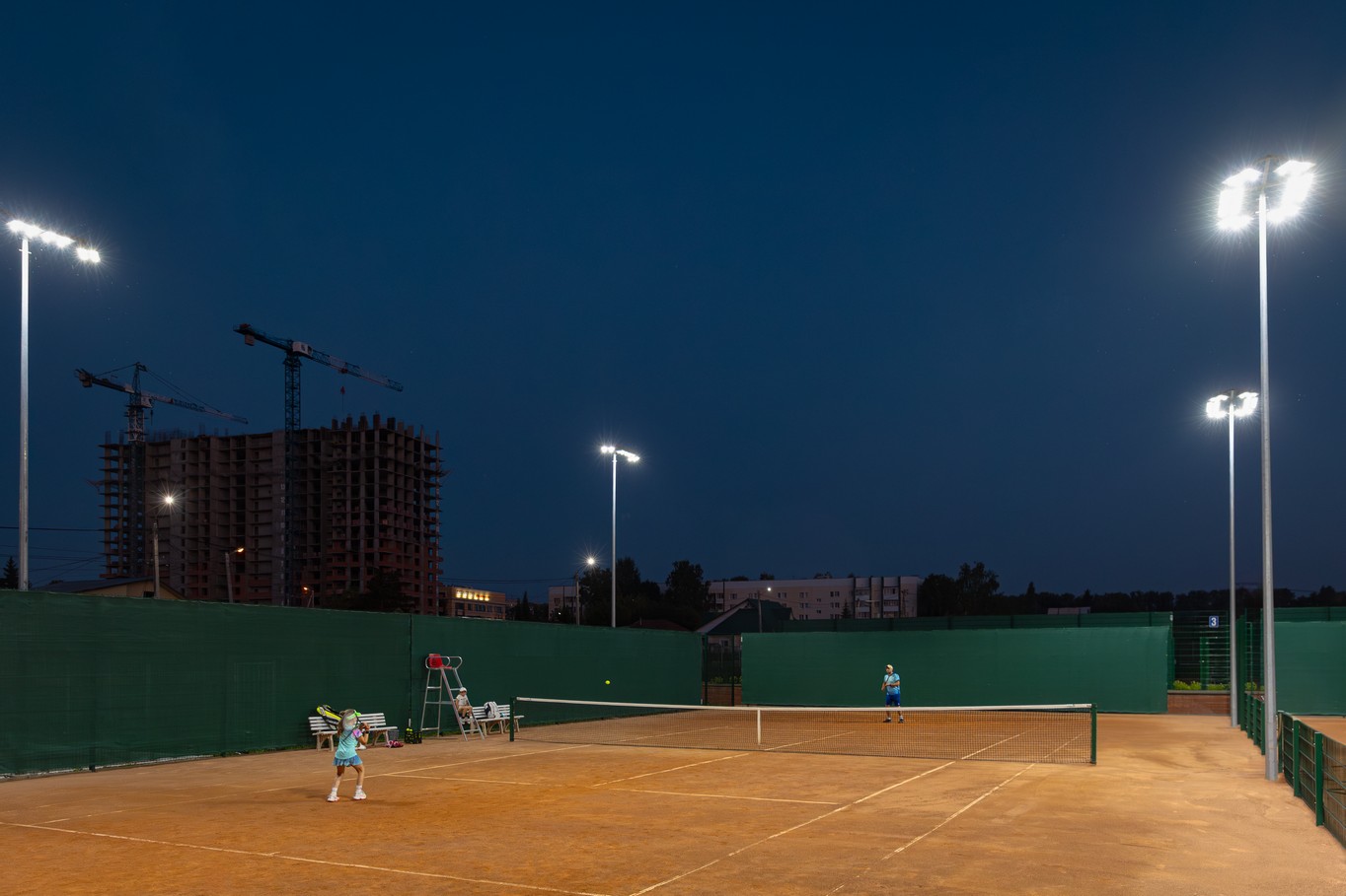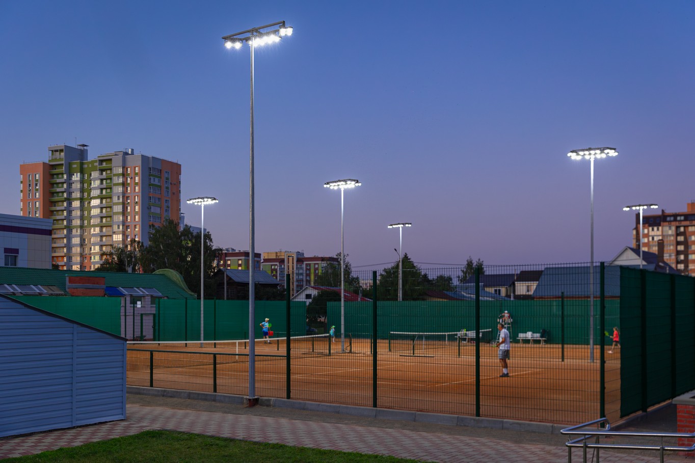 освещение теннисного корта 40х20 м. Требуемая освещенность — 500 лк.