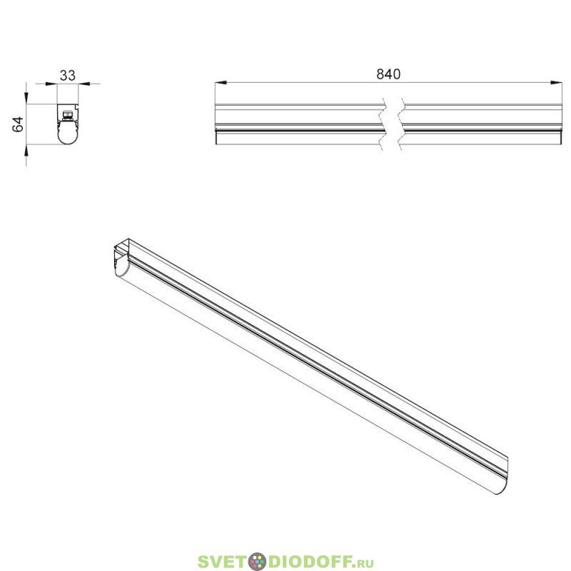 Архитектурный светодиодный светильник ЛИНИЯ Модерн v2.0 Профиль Транзитное Подкл., 7,5Вт 950Лм (9Вт/м) 24VDC 3000К Опал 840мм