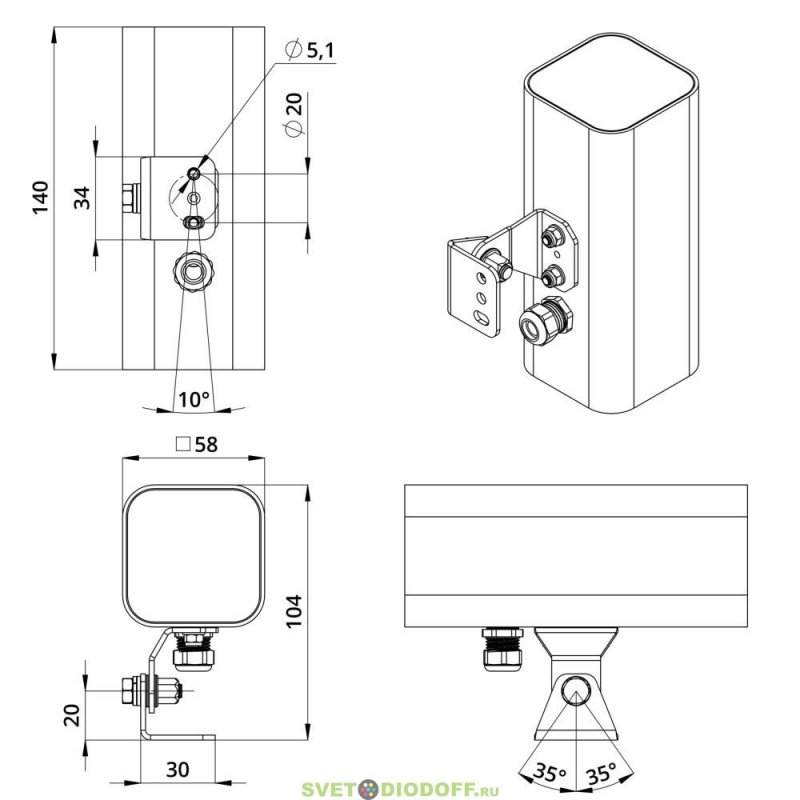 КОРПУС из экструдированного алюминия в квадратном форм-факторе. Благодаря отсутствию выступающих частей на нем не скапливается влага и загрязнения. Корпус надежно герметизирован и имеет степень защиты от пыли и влаги IP67. Покрыт порошковой краской.