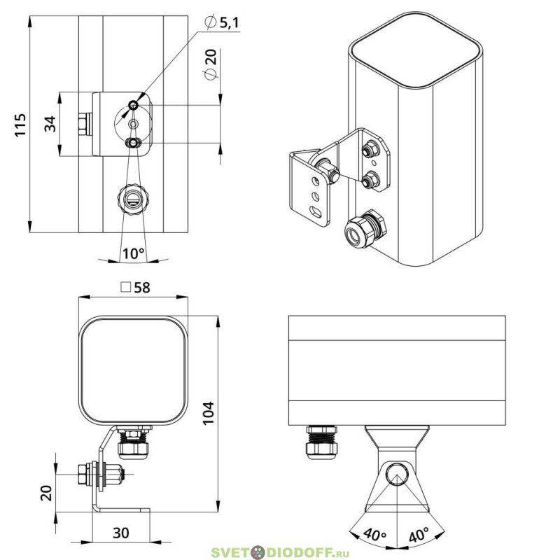 КОРПУС из экструдированного алюминия в квадратном форм-факторе. Благодаря отсутствию выступающих частей на нем не скапливается влага и загрязнения. Корпус надежно герметизирован и имеет степень защиты от пыли и влаги IP67. Покрыт порошковой краской.