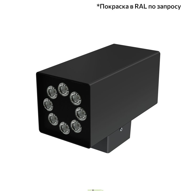 • компактные габаритные размеры и вес, благодаря которым прожектор можно размещать не только на фасадах зданий, но и на декоративных элементах (колонны, козырьки и т.д.) и в межоконных пространствах;