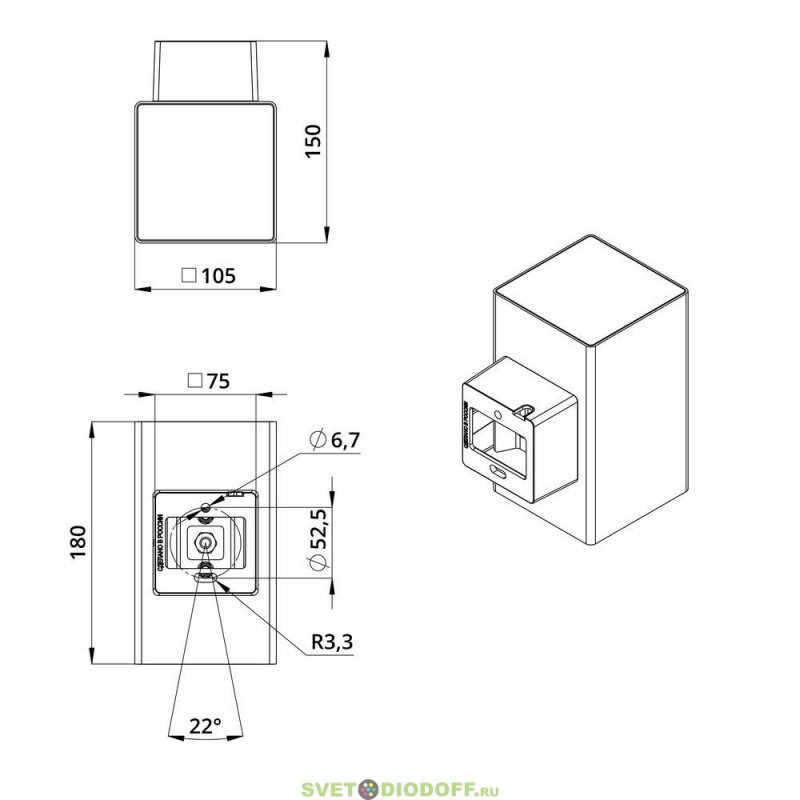 Фасадный двухсторонний светильник Акцент Куб ДУО 20Вт, 2380Лм, 5000К, оптика 10х65°, IP67, Скрытый монтаж, 180×150×105