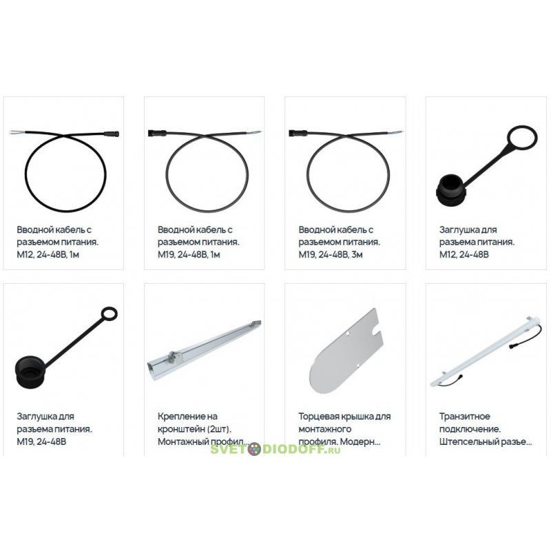 Светильник комплектуется монтажным профилем, в котором размещаются элементы проводки, используемые для транзитного подключения.