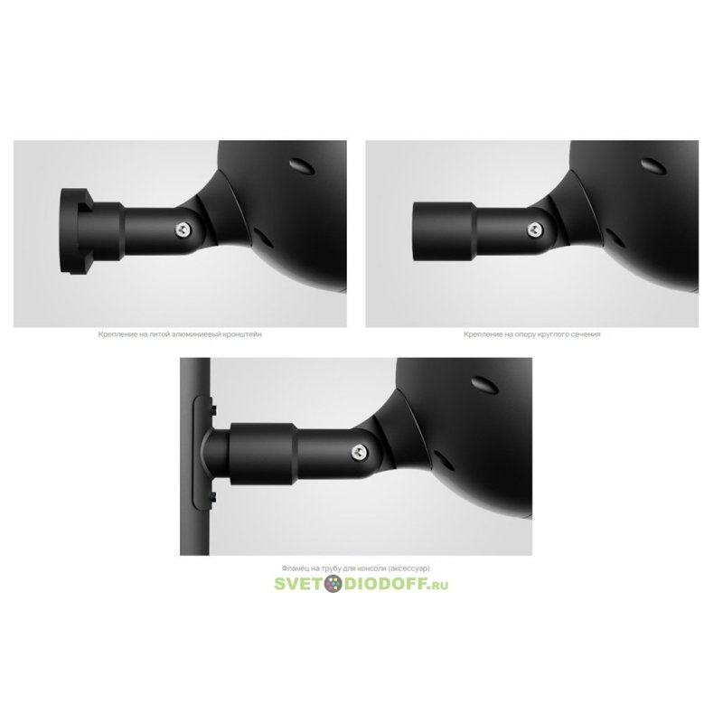 Светильники крепятся на кронштейн. Также возможно консольное крепление на опору круглого сечения.
