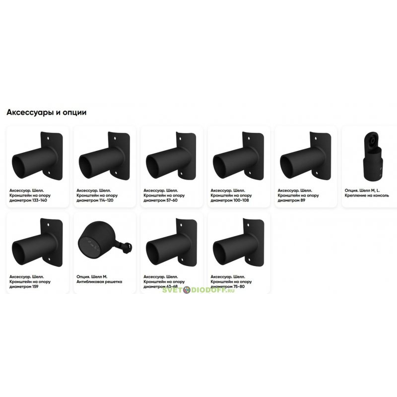 Светильники крепятся на кронштейн. Также возможно консольное крепление на опору круглого сечения.