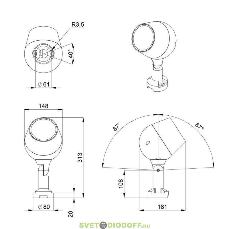 • литой алюминиевый корпус с возможностью регулировки угла наклона светильника;