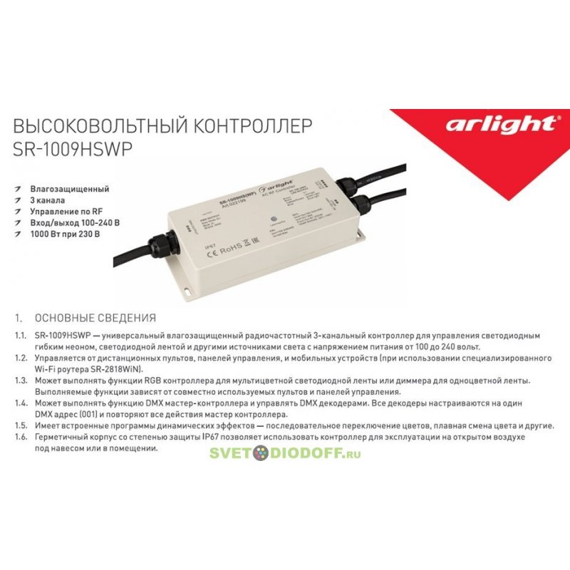 Контроллер SR-1009HSWP (230V, 3x1.66A) (Arlight, IP67 Пластик, 3 года)