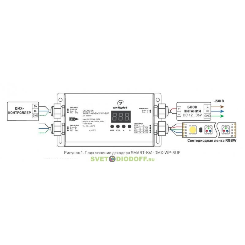 Декодер SMART-K61-DMX-WP-SUF (12-36V, 4x5A) (Arlight, IP67 Пластик, 5 лет)