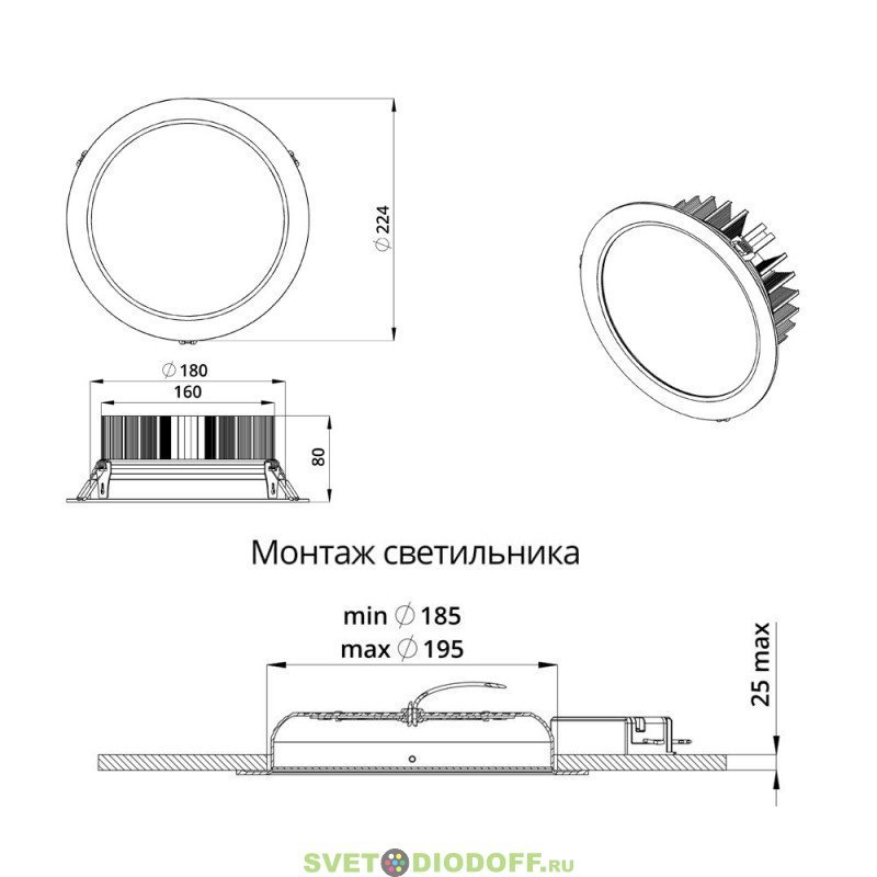 | Габаритные размеры, не более, [мм] | ⌀224x80 |