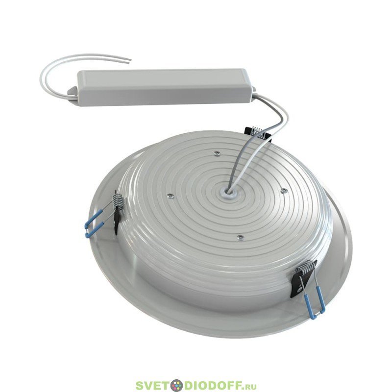 Светильник устанавливается в монтажное отверстие с помощью специальных зажимных пружин.