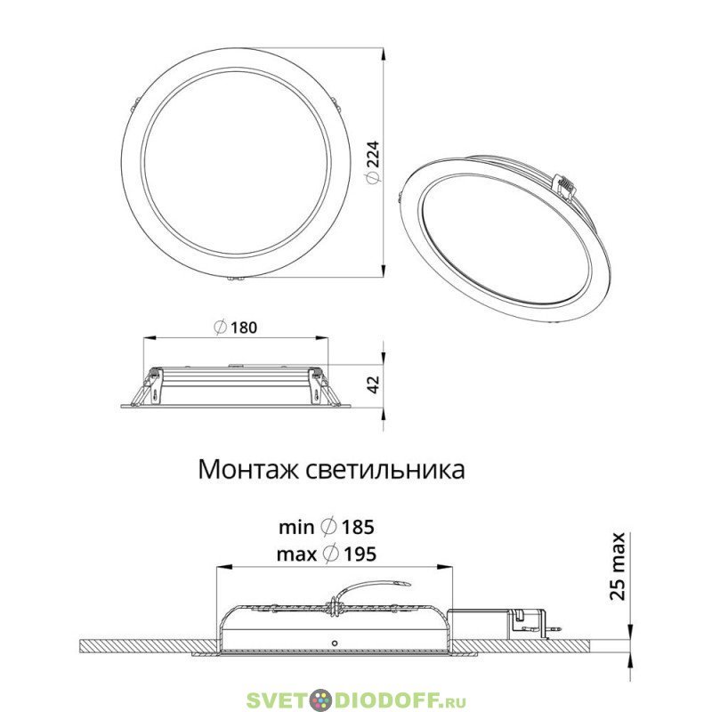 Светильник устанавливается в монтажное отверстие с помощью специальных зажимных пружин.