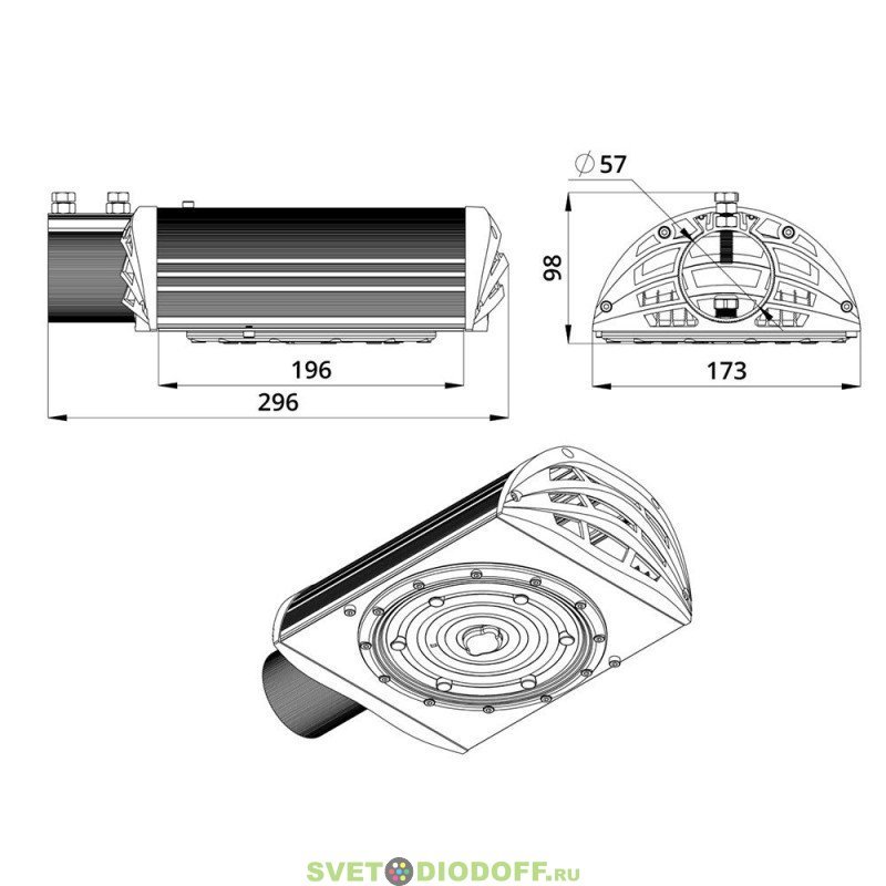 Светильники крепятся на консоль круглого сечения диаметром до 57 мм. Данная серия не имеет возможности регулировки угла наклона светильников.