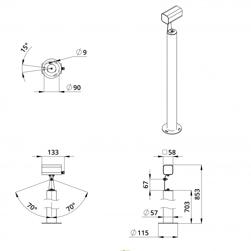 Архитектурный односторонний светильник Акцент Куб 5 XS 5Вт, 400Лм, 3000К Теплый, оптика 18°, IP67, 115×58мм, опора 700мм