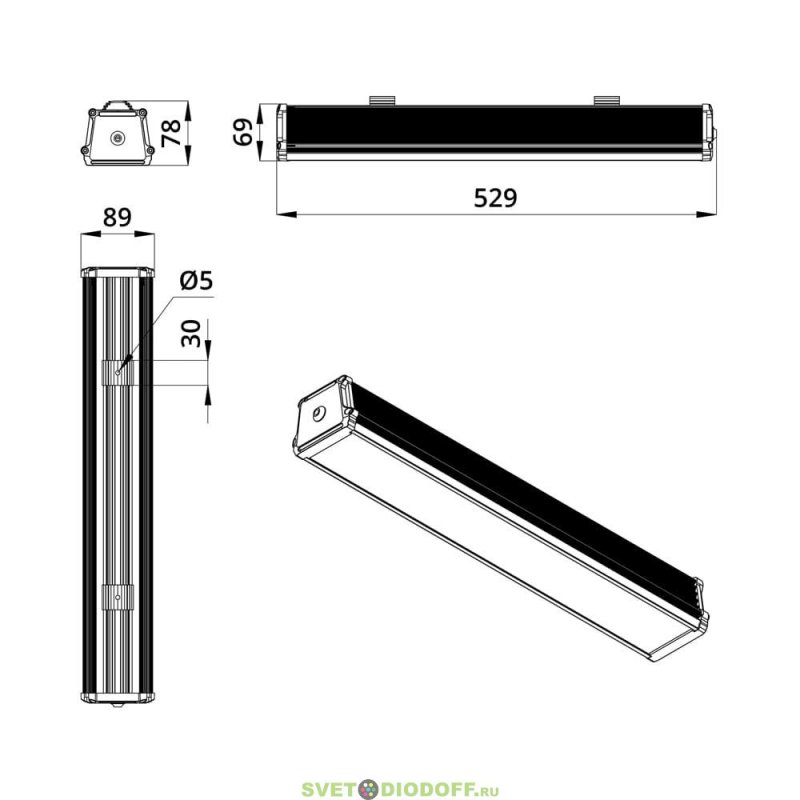 | Габаритные размеры, [мм] | 529×89×68 |