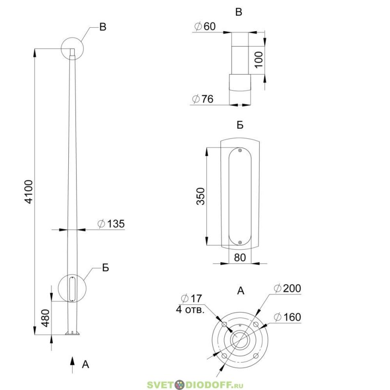 Светильник крепится на вертикальную опору. Стандартный диаметр посадочного отверстия – 78 мм. В комплекте идут крепежные болты.