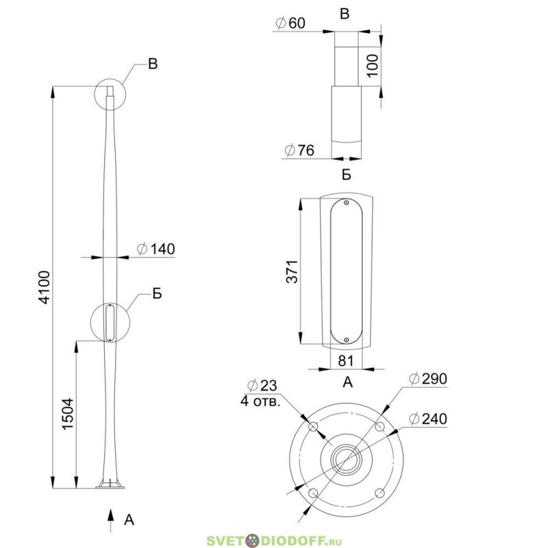 Декоративные опоры ОД-2-140-4 и уличные системы освещения (венчающие) широкий ассортимент от Российского производителя PromLed. Система на примере светильника ШАФТ