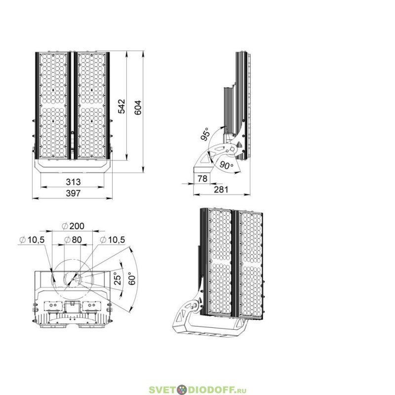 Серия уличных светодиодных прожекторов для освещения открытых объектов: спортивных стадионов, бассейнов, теннисных кортов, территорий площадей, парковок, портов.
