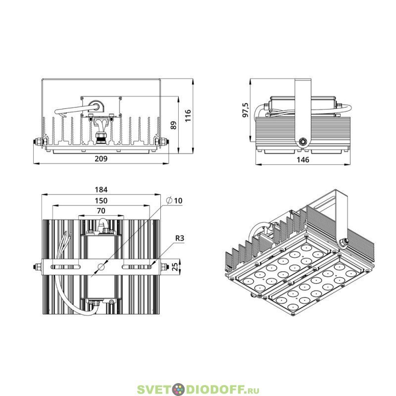 В комплекте идёт кронштейн, который позволяет регулировать угол наклона прожектора. Специальные зубцы на кронштейнах (для светильников 200-300 Вт) дополнительно облегчают регулировку положения прожектора.