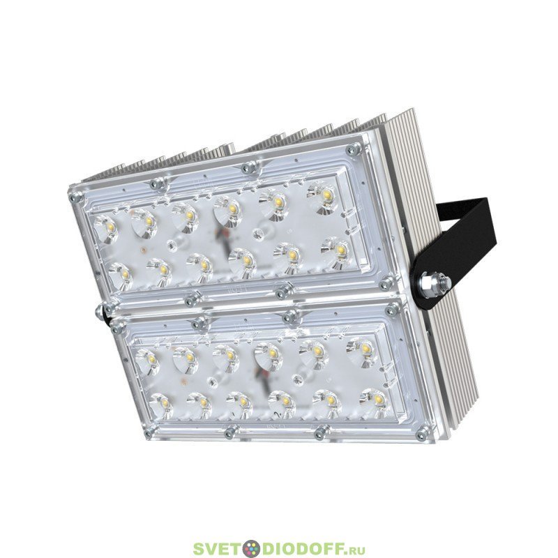 В комплекте идёт кронштейн, который позволяет регулировать угол наклона прожектора. Специальные зубцы на кронштейнах (для светильников 200-300 Вт) дополнительно облегчают регулировку положения прожектора.