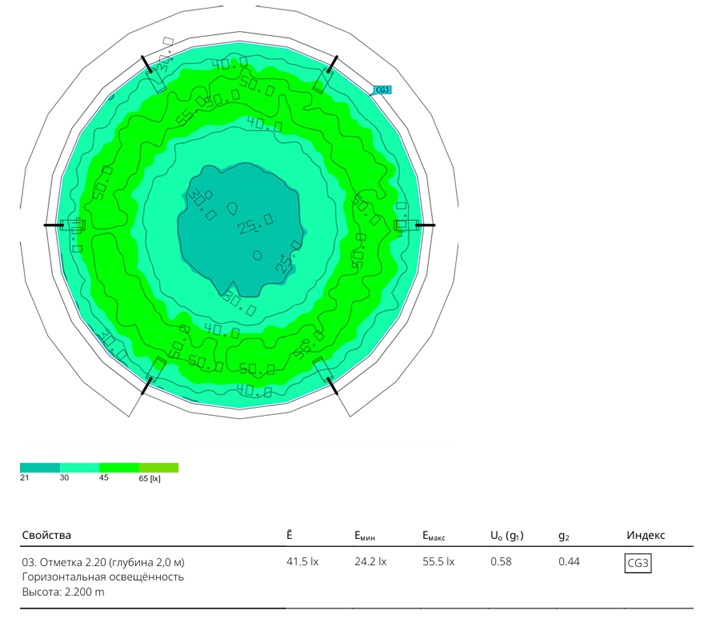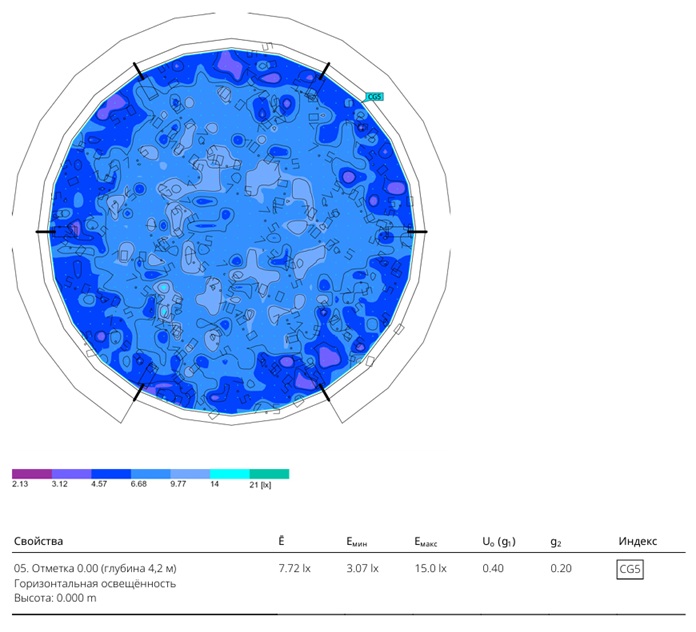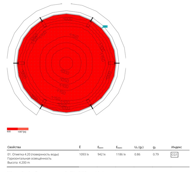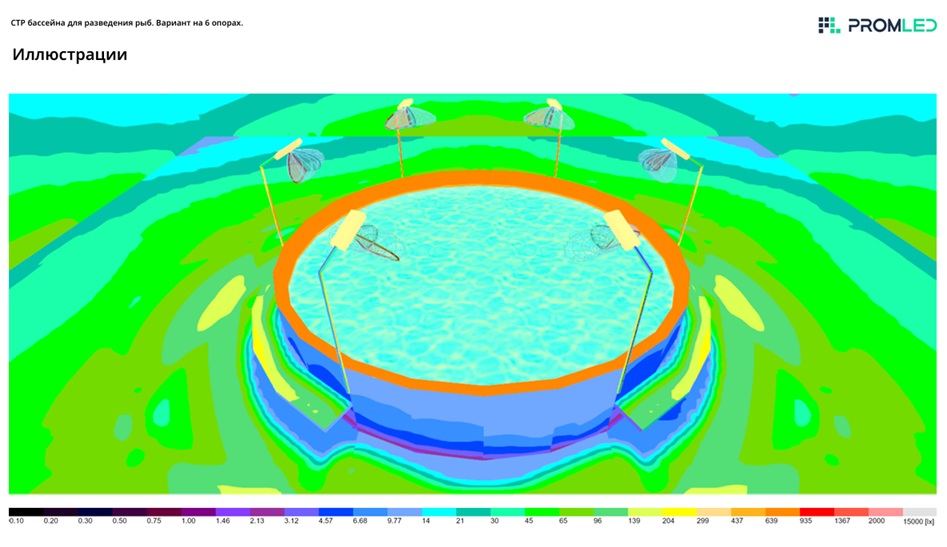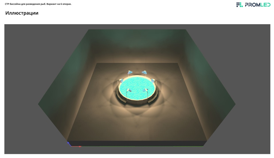 По требованию заказчика выполнен СТР освещения бассейна для разведения рыб.