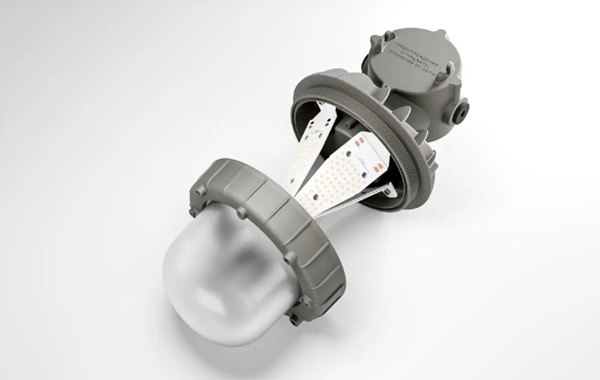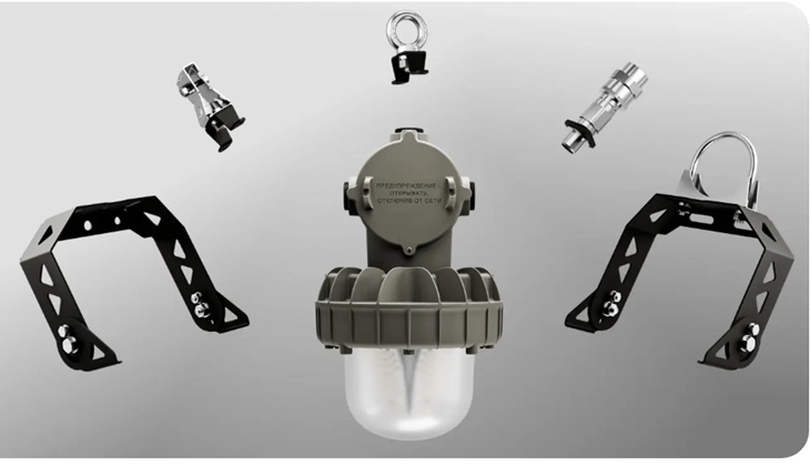 Надежная конструкцияЛитой корпус представляет собой взрывонепроницаемую оболочку типа Ex d. Конструкция предусматривает два изолированных отсека: основной — для светодиодного модуля и источника питания, второй — коммутационная коробка с возможностью установки кабельных вводов М20х1,5 или М25х1,5 (опционально). Кабельные вводы в базовую комплектацию не входят - светильник поставляется с заглушками.