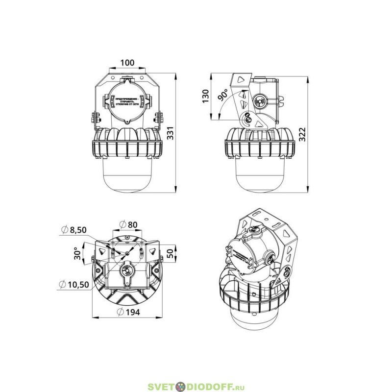 Корпус Светильник имеет литой корпус из алюминиевого сплава с порошковой покраской, представляющий собой взрывонепроницаемую оболочку с двумя разделенными отсеками.