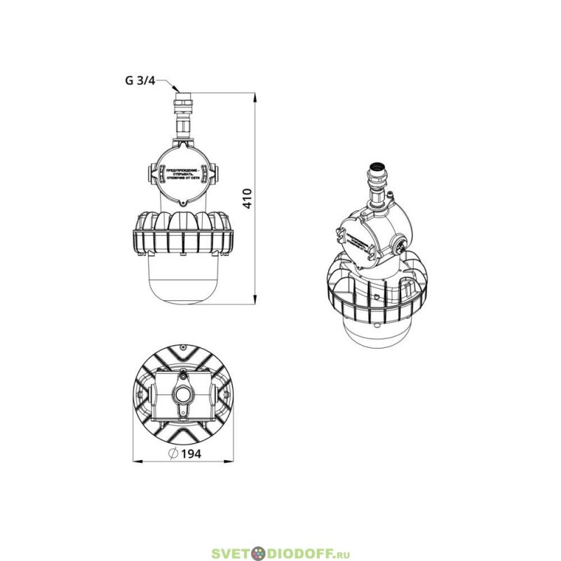 Взрывозащита Взрывозащищенность светильника обеспечивается видом взрывозащиты «взрывонепроницаемая оболочка».
