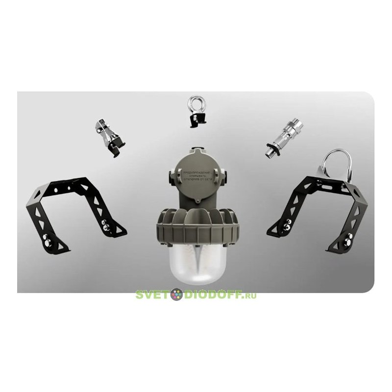 Корпус Светильник имеет литой корпус из алюминиевого сплава с порошковой покраской, представляющий собой взрывонепроницаемую оболочку с двумя разделенными отсеками.