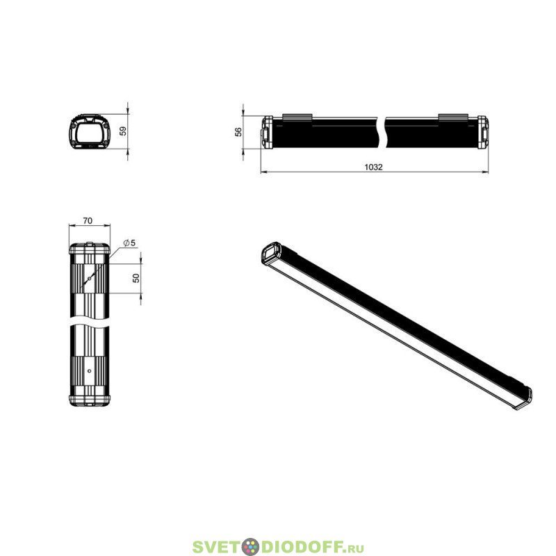 | Габаритные размеры, не более, [мм] | 1032×70×59 |