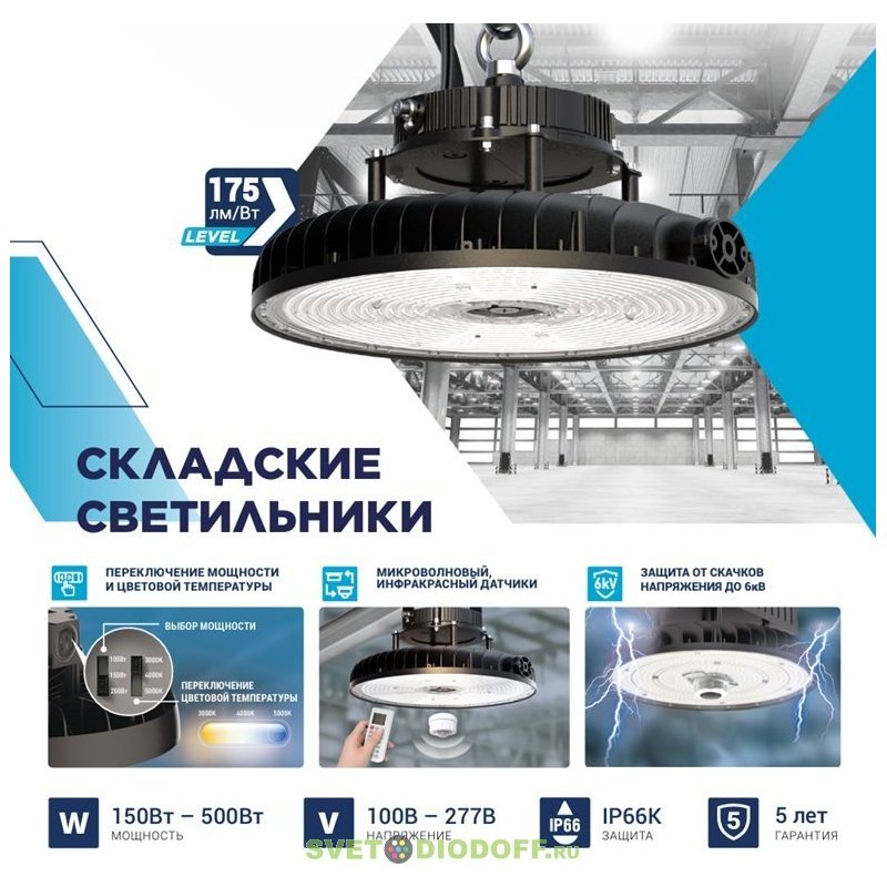 Функция переключения мощности, функция выбора цветовой температуры и широкий диапазон напряжения 110-277В обеспечивают надежную и комфортную работу с гарантией 5лет.