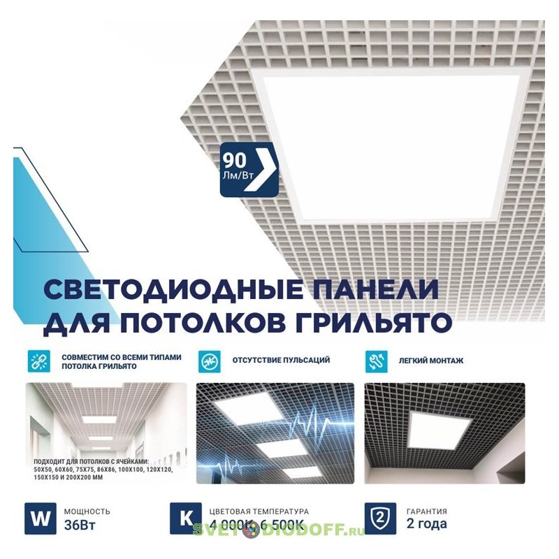 Панель светодиодная универсальная ГРИЛЬЯТО ДВО-02 G3665-ОПАЛ 36Вт 3240Лм 6500К IP40 588х588x19мм NEOX