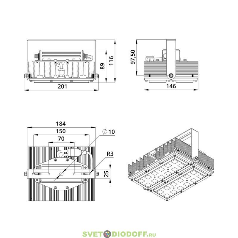 В комплекте идёт кронштейн, который позволяет регулировать угол наклона прожектора. Специальные зубцы на кронштейнах (для светильников 200-300 Вт) дополнительно облегчают регулировку положения прожектора.