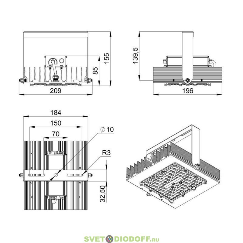 Прожектор светодиодный серия S ЭКО 80Вт, 11800Лм, 5000К Яркий дневной, оптика 155×70° градусов, IP67