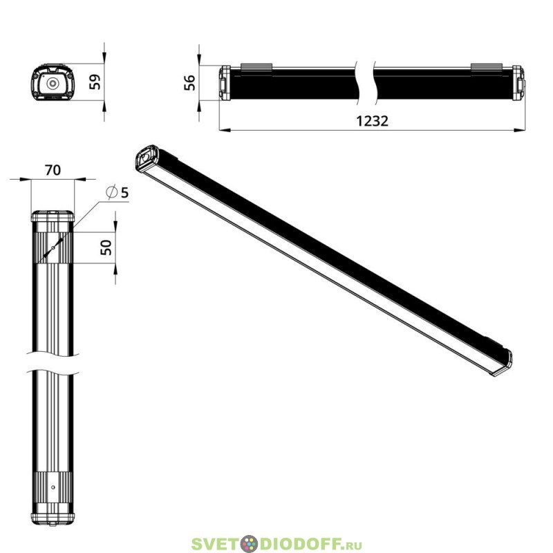 Линейный светодиодный светильник Т-Линия Компакт 70, 70Вт, 8680Лм, 3000К Теплый, IP67, Микропризма, 1200мм