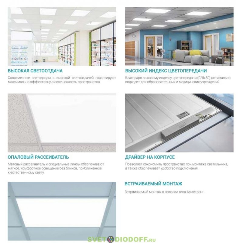 Панель светодиодная встраиваемая ДВО-PRO 4040-ОПАЛ 40Вт 4000К 120лм/Вт CRI80 595х595х30мм NEOX