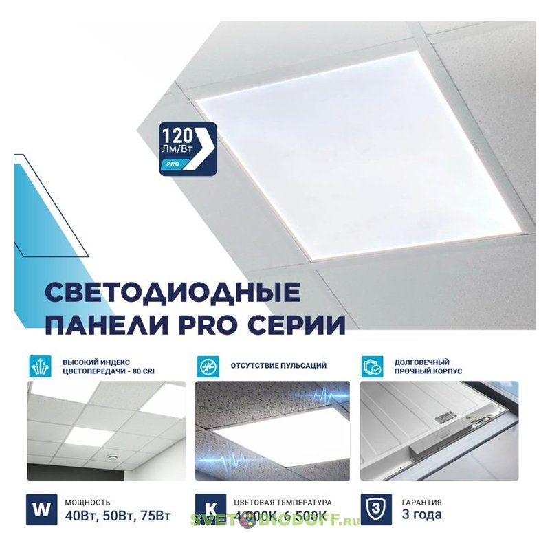 Панель светодиодная встраиваемая ДВО-PRO 5040-ОПАЛ 50Вт 4000К 120лм/Вт CRI80 595х595х30мм NEOX