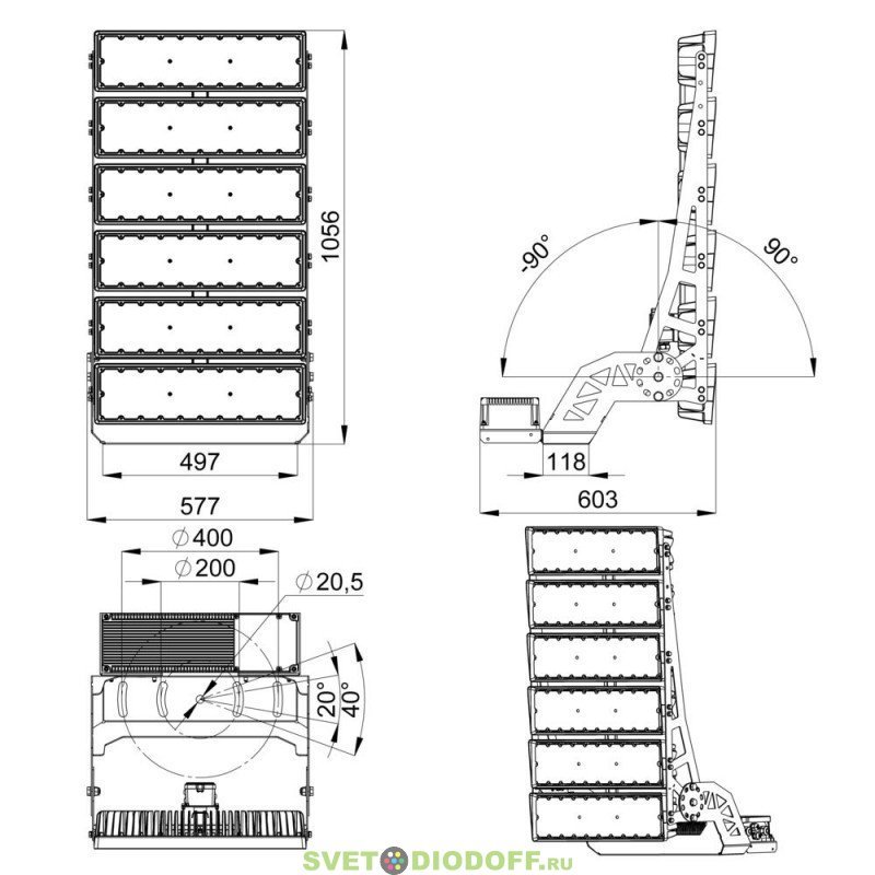 За счет конструкции радиаторной части прожекторы мощностью 400 и 500 Вт на один модуль имеют оптимальное сочетание массы, габаритов и цены за люмен, что особенно важно при выборе светильников для установки на высокомачтовые опоры.