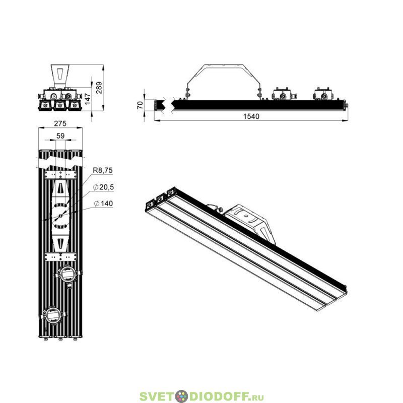 Серия линейных светодиодных светильников Т-Линия v2.0х3, 450Вт для освещения: