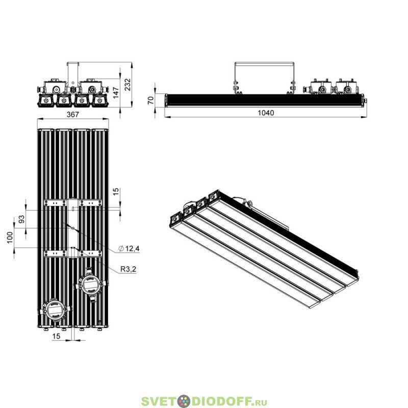 Серия линейных светодиодных светильников Т-Линия v2.0х4, 400Вт для освещения: