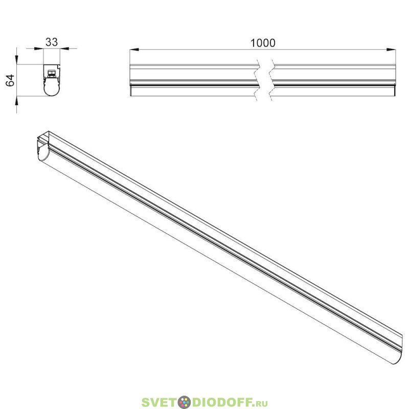 Базовый типоразмер светильника – 1000 мм. Возможно изготовление светильников меньшей длины для выстраивания линий требуемой протяженности.