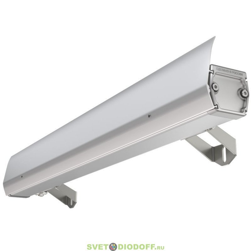 У светильников предусмотрен монтажный профиль с подвижными монтажными скобами, которые перемещаются вдоль корпуса, позволяя скорректировать точки крепления светильника. С помощью этих скоб светильники крепятся на поворотные кронштейны.