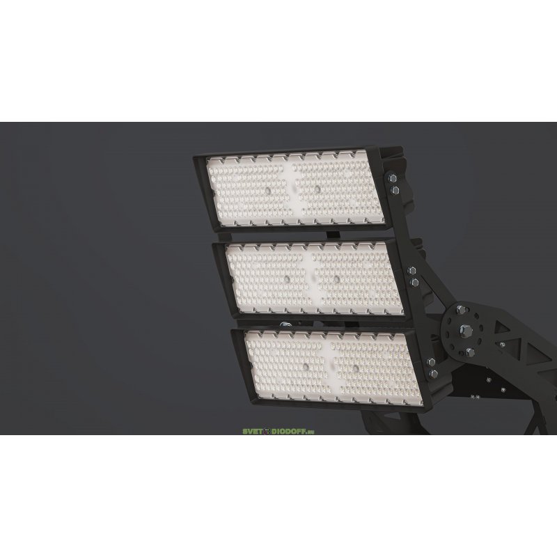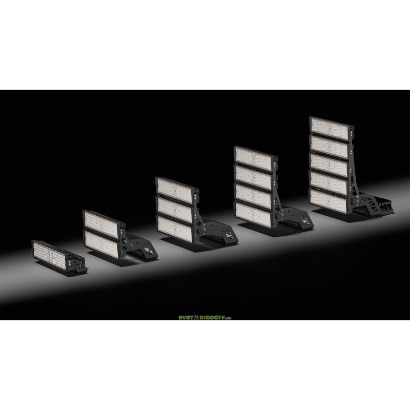 За счет конструкции радиаторной части прожекторы мощностью 400 и 500 Вт на один модуль имеют оптимальное сочетание массы, габаритов и цены за люмен, что особенно важно при выборе светильников для установки на высокомачтовые опоры.