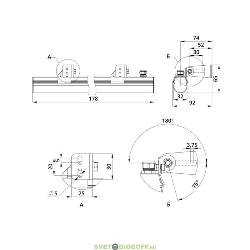 Базовый типоразмер светильника – 1000 мм. Возможно изготовление светильников меньшей длины для выстраивания линий требуемой протяженности.