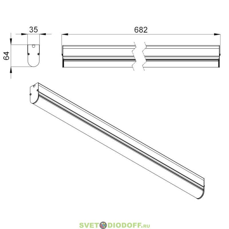 Архитектурный светодиодный светильник ЛИНИЯ Модерн v2.0 Профиль, 6Вт, 820Лм (9Вт/м) 24V DC, 4000К, Опал, 675мм