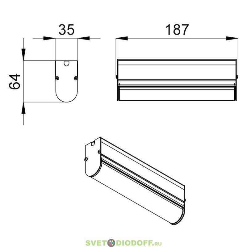 Базовый типоразмер светильника – 1000 мм. Возможно изготовление светильников меньшей длины для выстраивания линий требуемой протяженности.