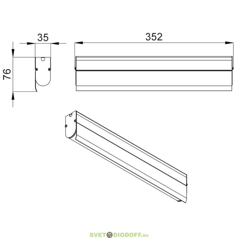 Архитектурный светодиодный светильник ЛИНИЯ Модерн v2.0 Профиль Козырек, 2Вт, 210Лм (6Вт/м) 48V DC, 5000К, Опал, 345мм