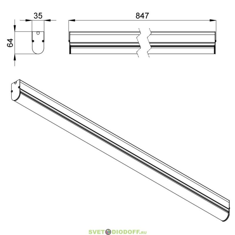 Архитектурный светодиодный светильник ЛИНИЯ Модерн v2.0 Профиль, 2,5Вт, 343Лм (3Вт/м) 48V DC, 5000К Яркий дневной, Опал, 840мм