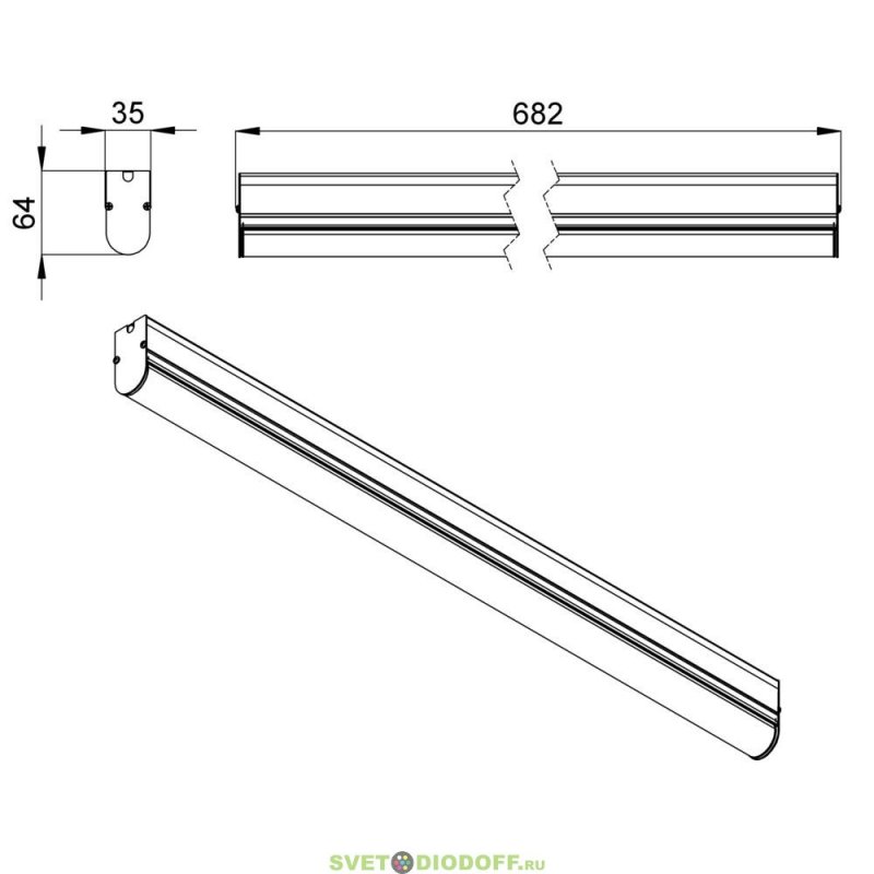 Архитектурный светодиодный светильник ЛИНИЯ Модерн v2.0 Профиль, 2Вт, 250Лм (3Вт/м) 48V DC, 3000К Теплый, Опал, 675мм