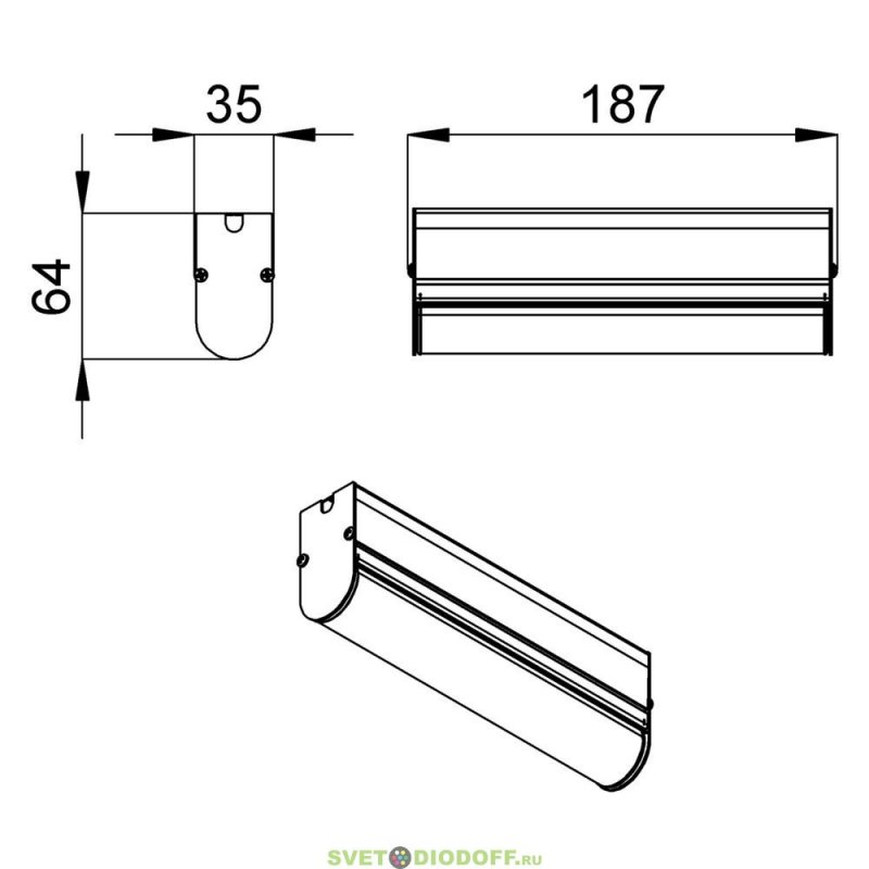 Архитектурный светодиодный светильник ЛИНИЯ Модерн v2.0 Профиль, 0,5Вт, 60Лм (3Вт/м) 48V DC, 3000К Теплый, Опал, 180мм